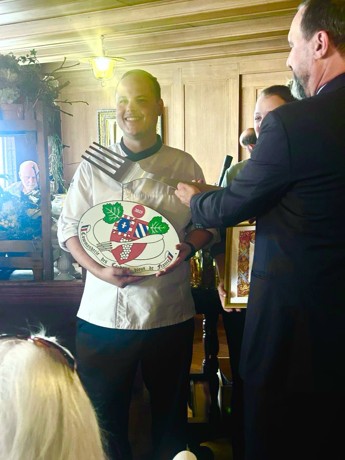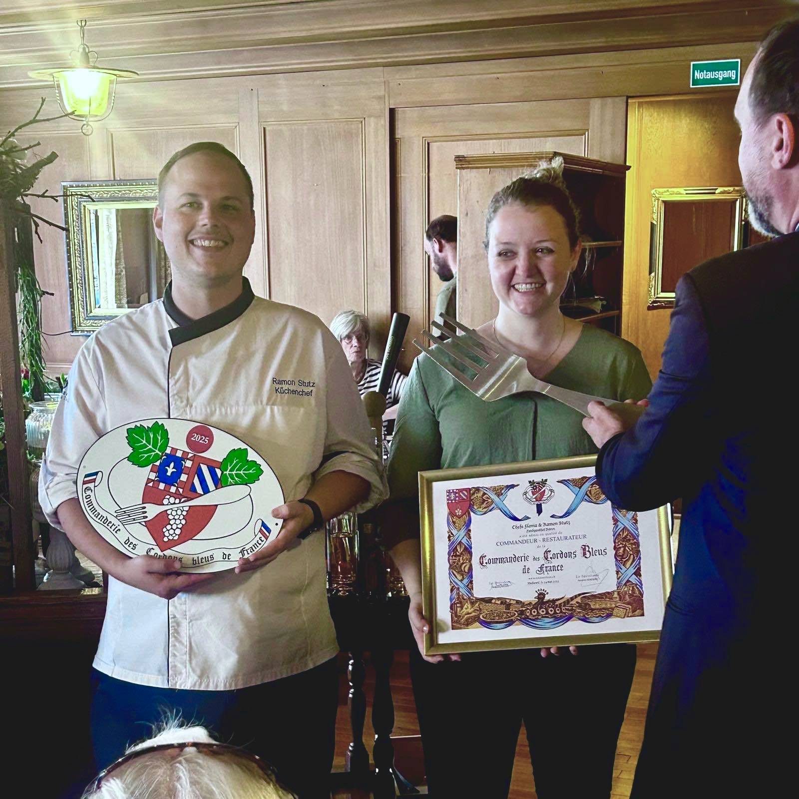 Remise du panonceau aux Chefs Ramon et Flavia Stutz qui deviennent, avec aisance, au Landgasthof Bären les nouveaux Commandeurs des Cordons Bleus de France !