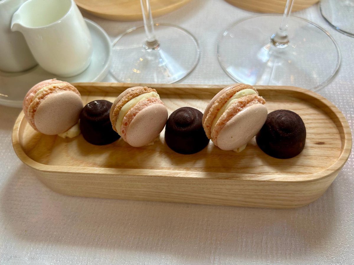 Café arabica ou tisane Macaron et carré de chocolat pure origine