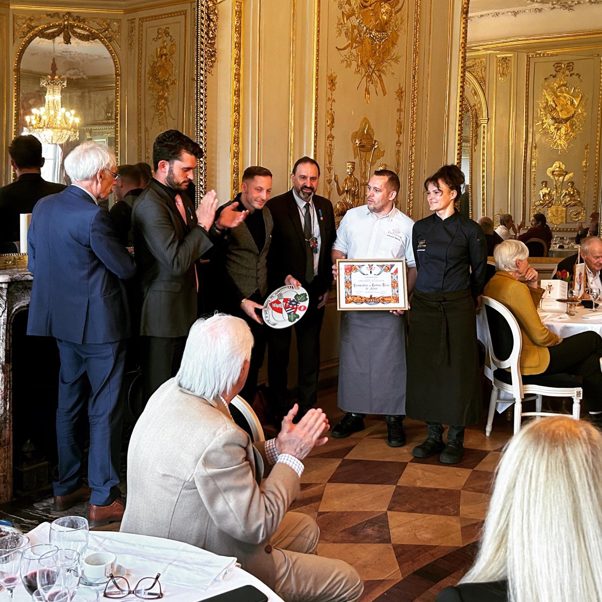 Toutes nos félicitations au Chef Edmond BAVOIS, sa brillante compagne Ieva BOKSBERGA et à Guillaume Toupance qui deviennent, avec nos compliments, les nouveaux commandeurs des Cordons bleus de France !