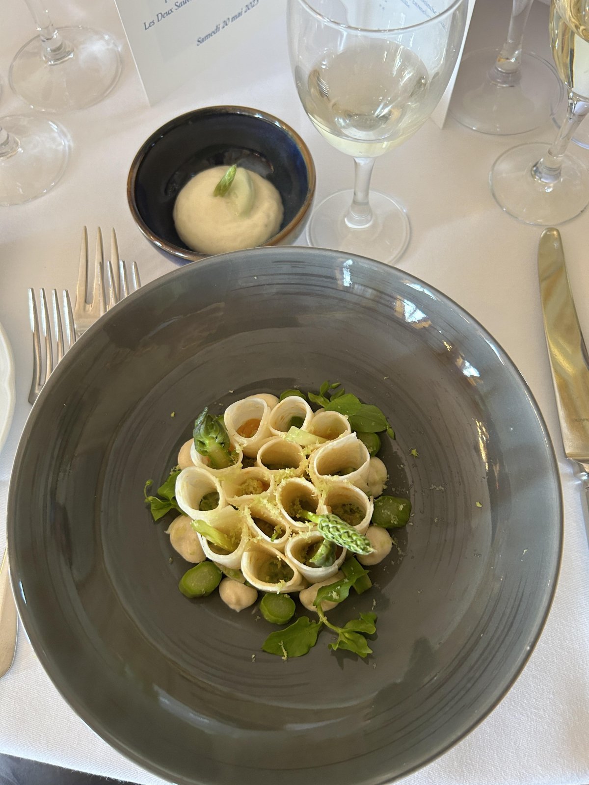 Tartare d'asperges, wasabi frais et cardamone violette,