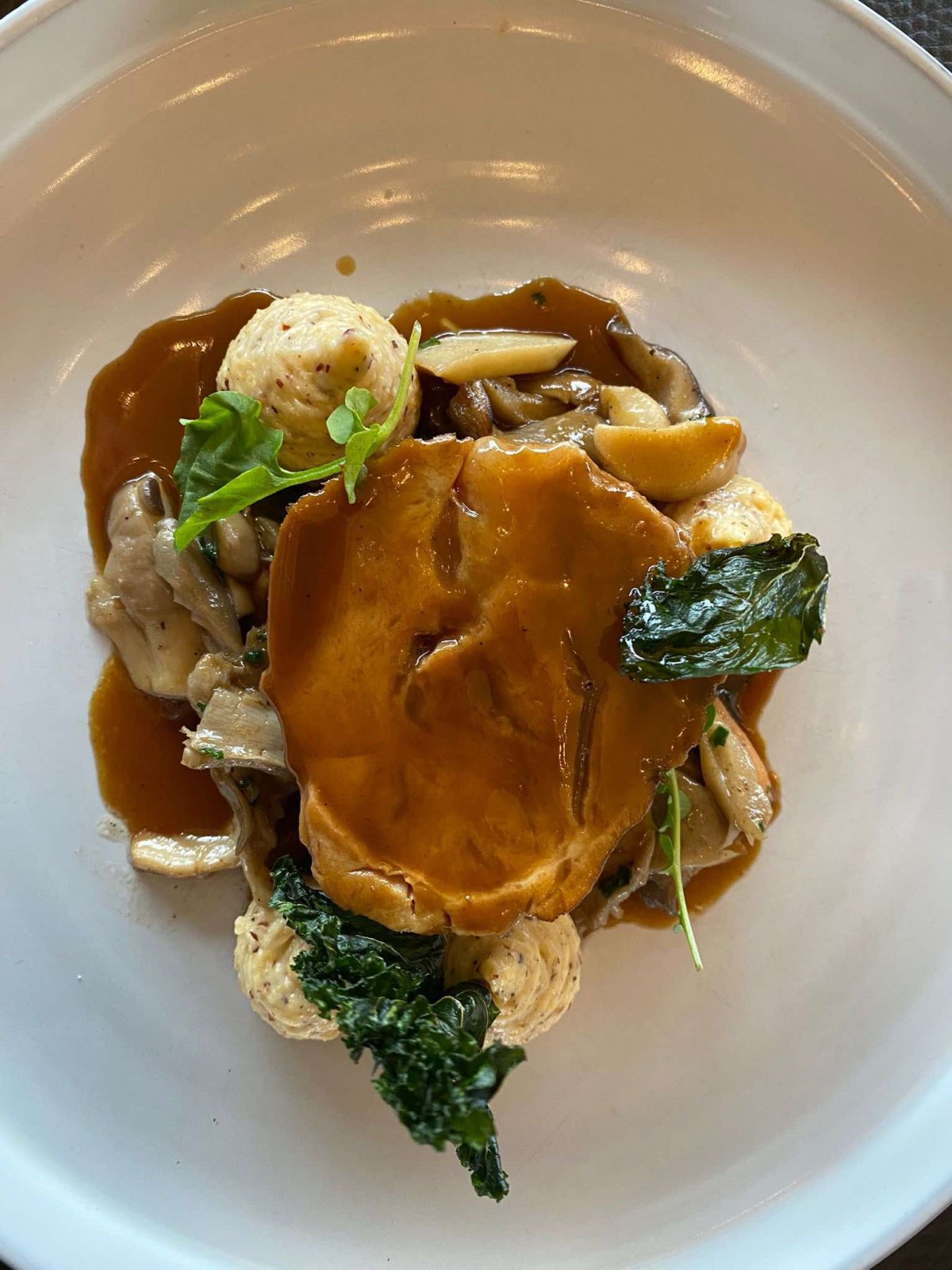 Épaule de veau braisée / Polenta rouge du Tessin / Chou kale / Champignons